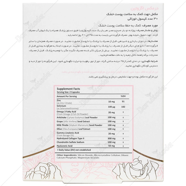 - دارای ترکیبات موثر اسید هیالورونیک، کلاژن و روغن امگا3